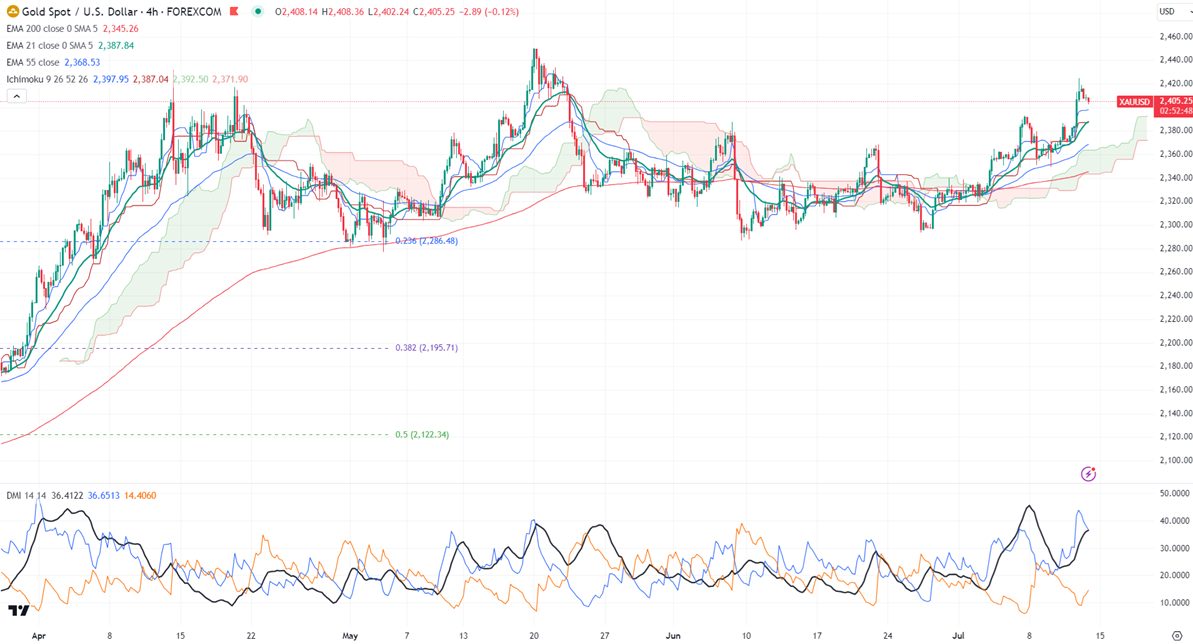 Gold edged above $2400 on board based on the US dollar weakness. It hit a high of $2424 yesterday and is currently trading around $2405.