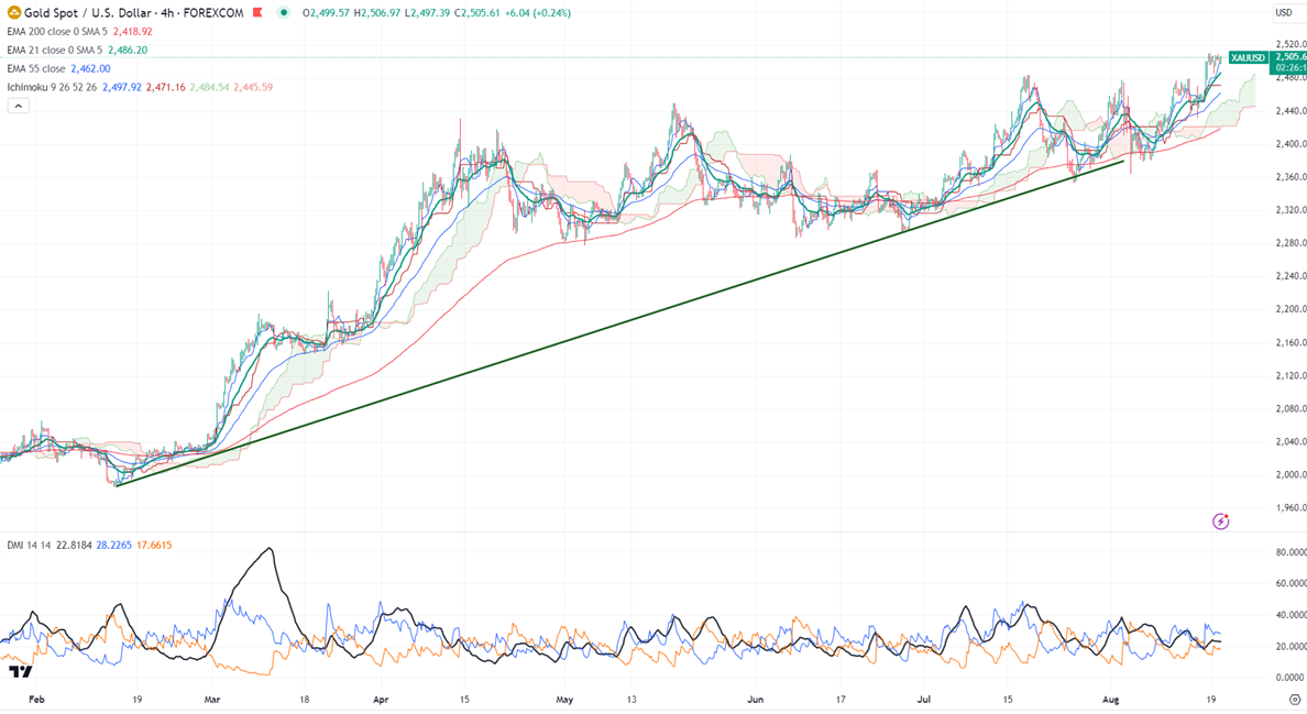 Gold consolidated in a narrow range after hitting a fresh all-time high. It hit a high of $2509.82 and is currently trading around $2504.