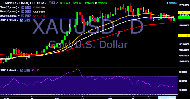 - XAU/USD is currently trading around $1225 mark.