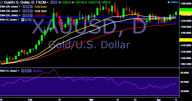 We prefer to take long position in XAU/USD at $1248, stop loss $1238 and target $1268 marks.