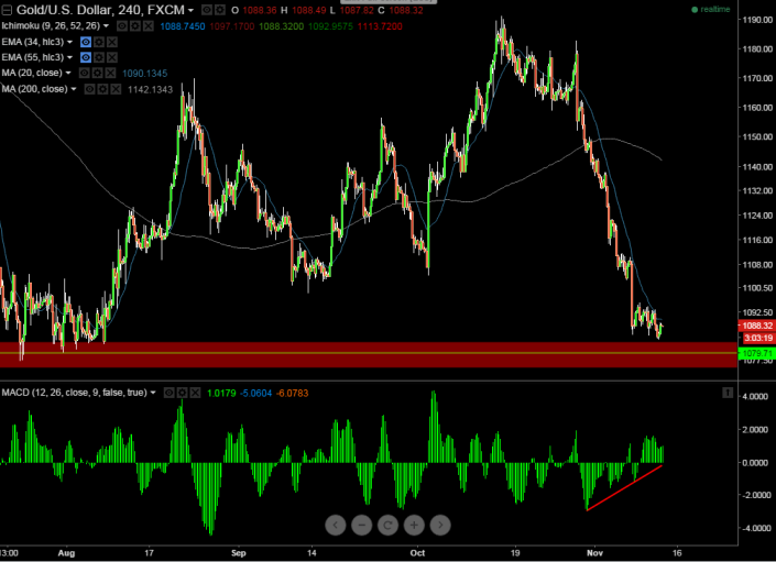 - Gold has retreated till $1084 after making a high of $1093. It is currently trading at $1088.
