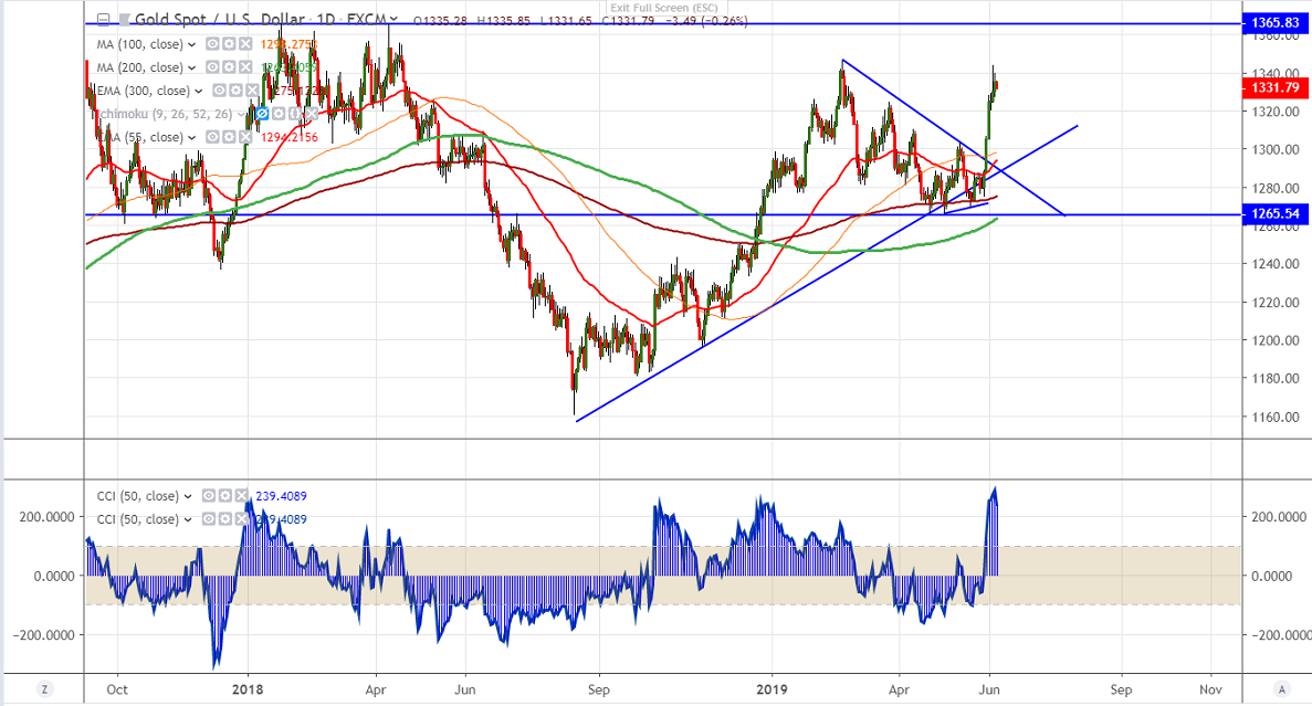 S&P500: Short term trend - Bullish.It has jumped more than 3.5% in pat three days on rate cut hopes and US-Mexico trade optimism.