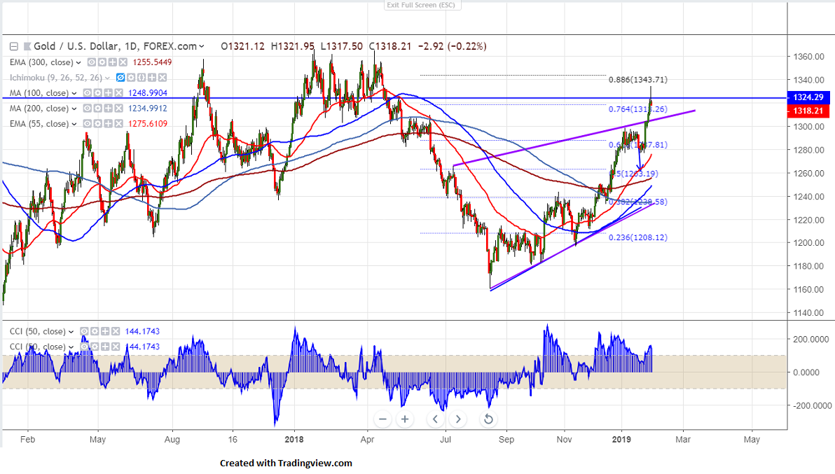 The near term support is around $1311 and any violation below will drag the commodity down till $1300/$1295.Any break below $1276 confirms minor weakness.