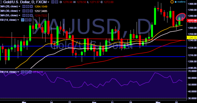 We prefer to take short position in XAU/USD only below $1270, stop loss $1279 and target $1264/$1256 marks.