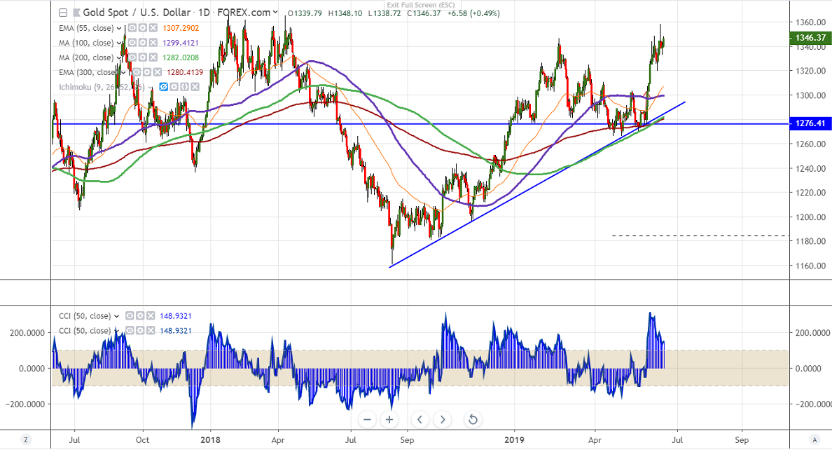 The near term support is around $1332 (10- day MA) and any break below confirms minor weakness a dip till $1323 (38.2% fib)/$1318. Any major weakness only below $1318.