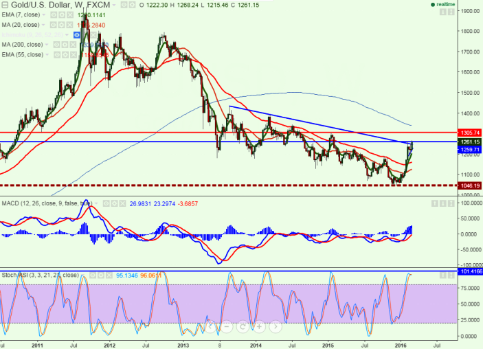 - Gold has broken major resistance $1250 and jumped $1268. It is currently trading around $1261.