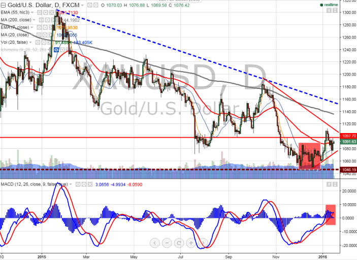 - The commodity has made a low of $1071 and started to recover from that level. Short term trend is still bullish as long as support $1070 holds.