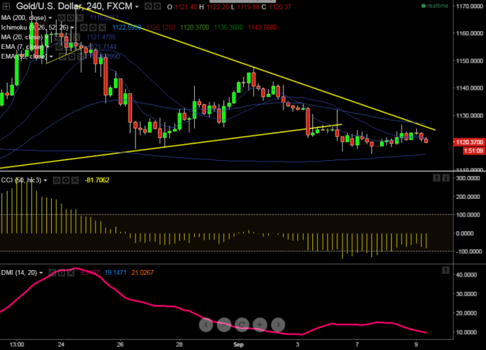 - Gold has declined till $1116 after making a low of $1147. It is currently trading at $1122. Overall trend is still bullish as long as support $1115 holds.