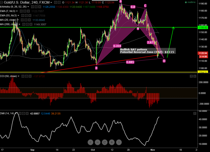 - The commodity has broken major support around $1130 and declined till $1115. Gold short term support is around $1115 (61.8% retracement of $1071 and $1190.25) and break below targets $1105/$1095.