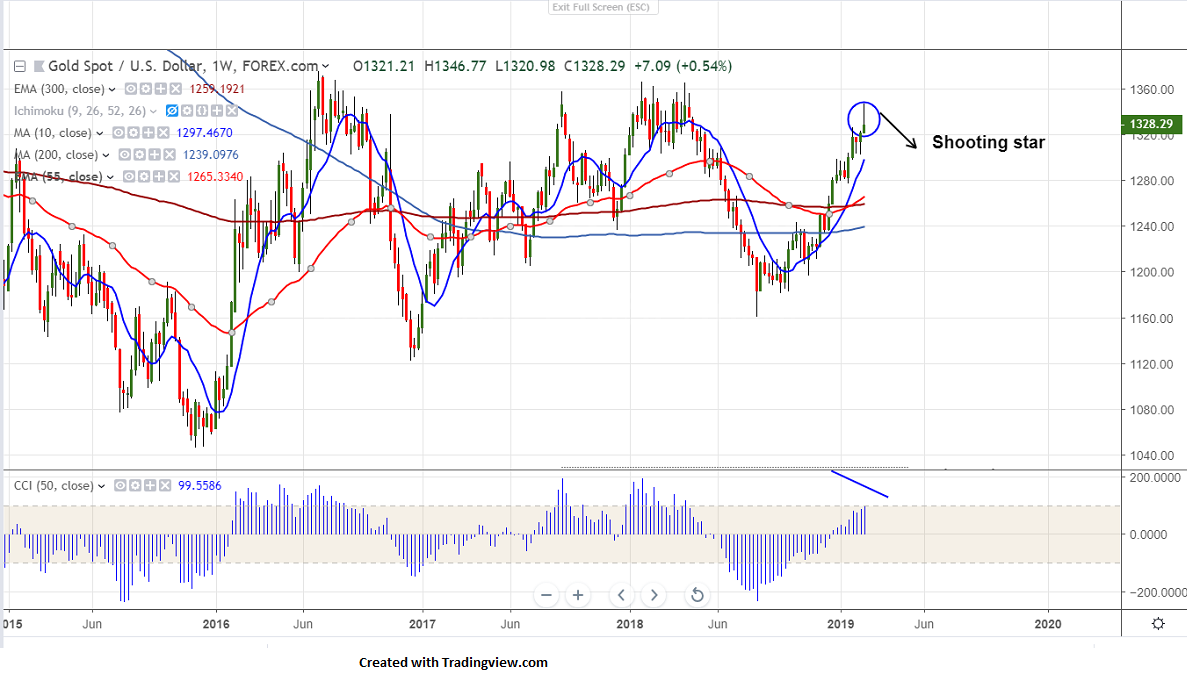 Gold has declined more than $25 in previous week after hitting high of $1346.77. The yellow metal hits low of $1321.14 and shown a minor recovery. It is currently trading around $1328.