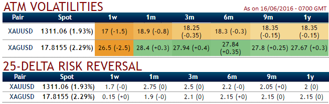 The implied volatilities of 1W XAU/USD ATM contracts have faded a bit 17% and 18.9% for 1m tenors.