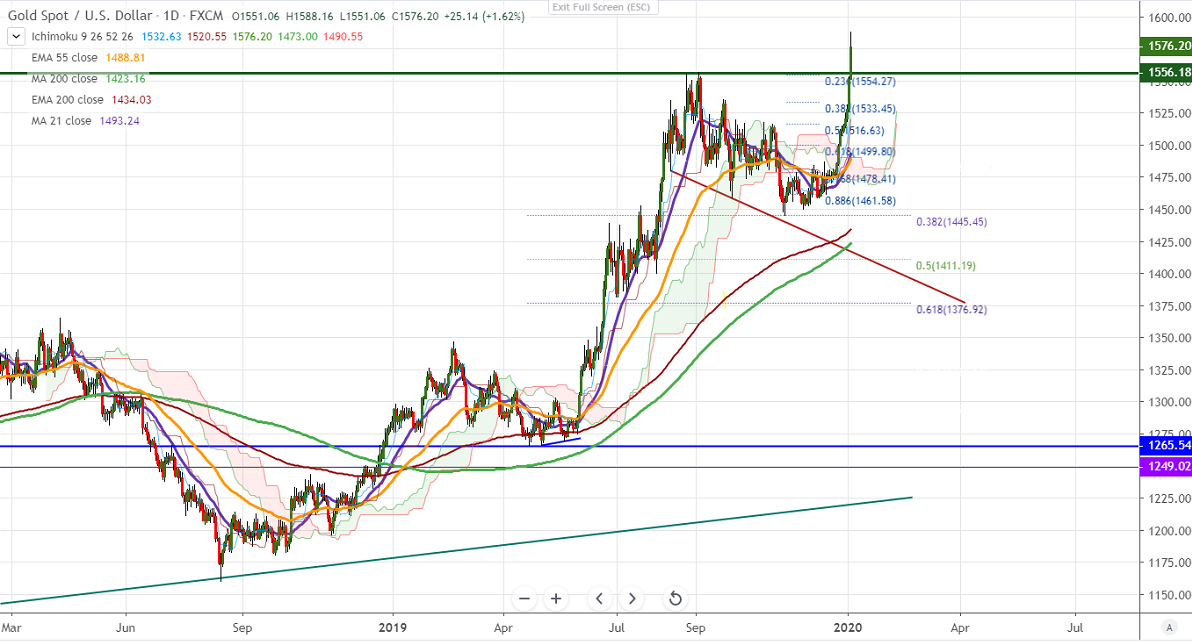 Gold continues to trade higher and jumped more than $50 US-Iran geopolitical tension. The escalation of tension in the Middle East after the US killed a top Iranian Military general. President Trump threatened to hit 52 Iranian sites if Iran retaliates.