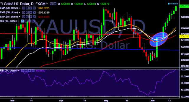 - XAU/USD is currently trading around $1297 marks.