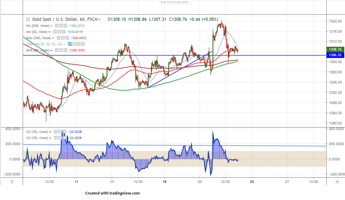 The near term support is around $1303 (200-H MA) and any violation below will drag the commodity down till $1298/$1292/$1285.