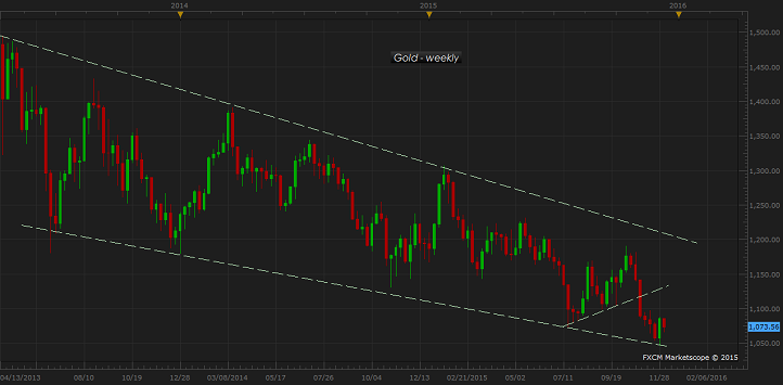 So there is a possibility that gold might break the channel to the downside over FED hike and drop to test vital $1000/troy ounce area but unless that break, we are considering the bullish possibilities quite seriously.
