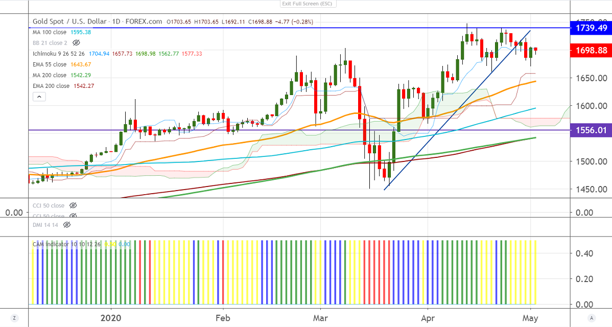 Gold is trading in a narrow range between $1661 and $1747 for past 2-weeks. The major sell-off in global stock markets is supporting gold at lower levels. U.S markets especially, S&P500 lost more than 2.5% on weaker than expected US ISM manufacturing data. It came at 41.5, 11-year low vs forecast of 36.7.