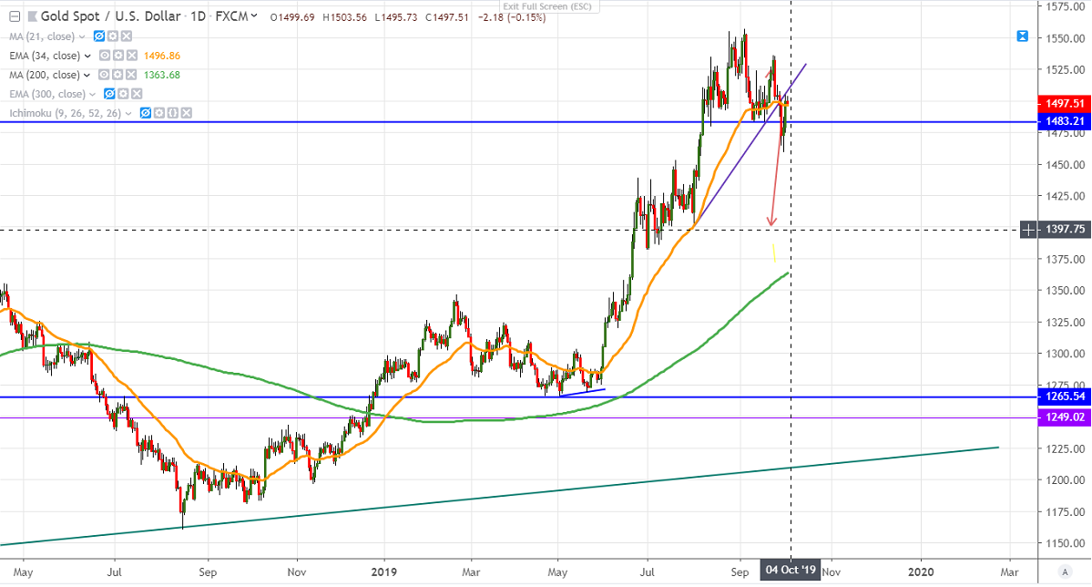 Gold recovers more than $40 from the low of $1458 and crossed $1500 level on trade war tension between US-EU union. US is planning to hit EU with 10% tariffs on aircraft and 25% tariffs on agricultural and other products effective Oct 18th, 2019. It hits a high of $1505 and is currently trading around $1500.99.
