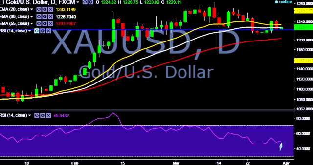 We prefer to take long position in XAU/USD around $1225, stop loss $1221 and target $1232/$1237 marks.