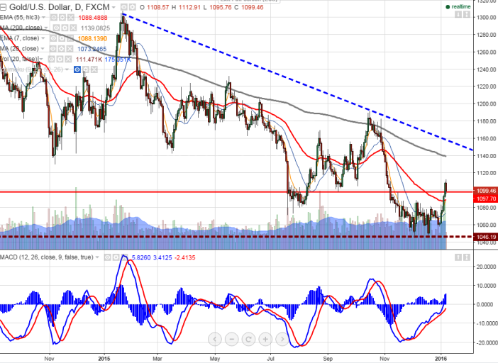 - The commodity has slightly retreated after making a high of $1112. It is currently trading at $1099.