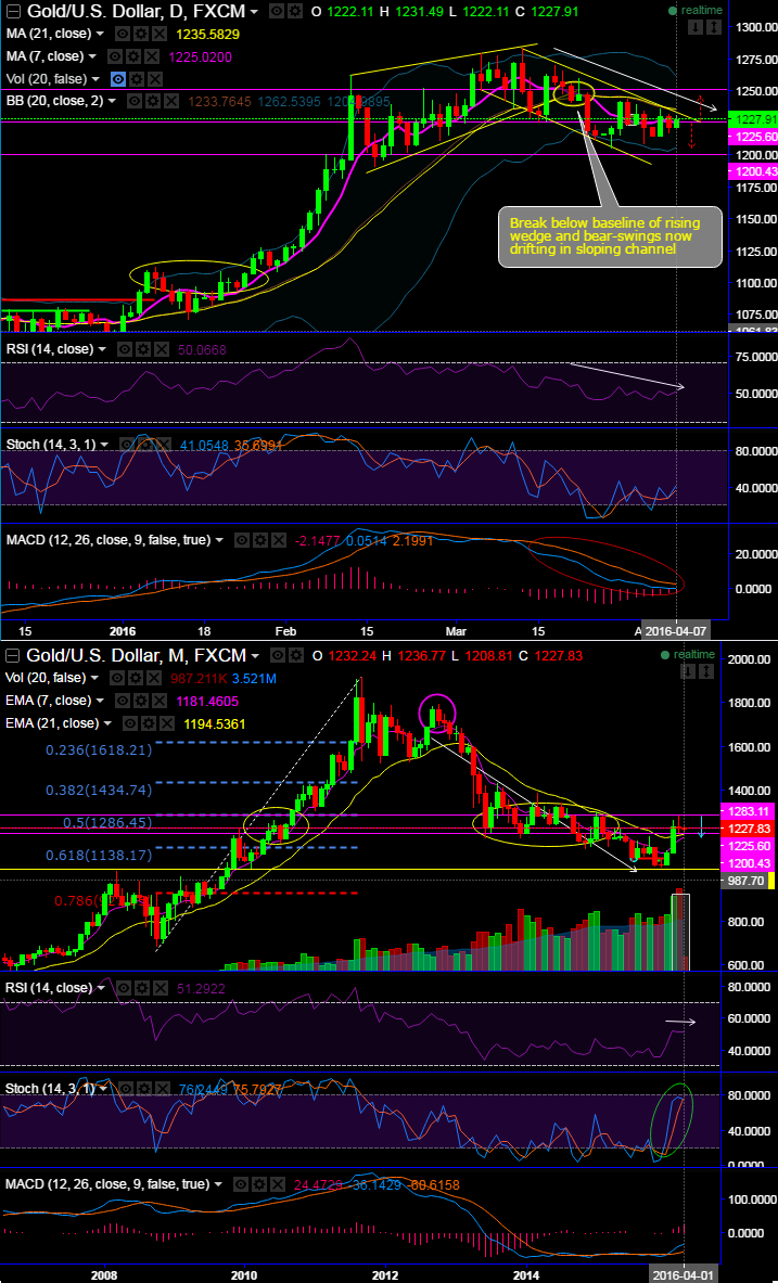 Hence, in this varied technical signals from daily and monthly, we could foresee the price of this precious metal to range in 1200 on south and 1250 on northwards in next week or so.