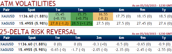 As per our prediction in our previous posts golds has gained from the lows of 1111.54 levels to the current 1137.54 levels. You can still observe the delta risk reversal has been neutral but shifted into red zone again for 3 months contracts with increased volatility from the above table. Further the positions constructed for bull overview will increase in value with time decay. But for now rate hike is almost deferred and what do you think can be the impact on gold?