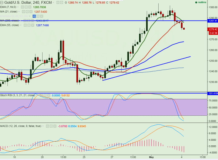 - Gold has broken major support $1285 and declined till $1278 at the time of writing. Any break below $1285 will drag the commodity down till $1265/$1250/$1242 in short term.