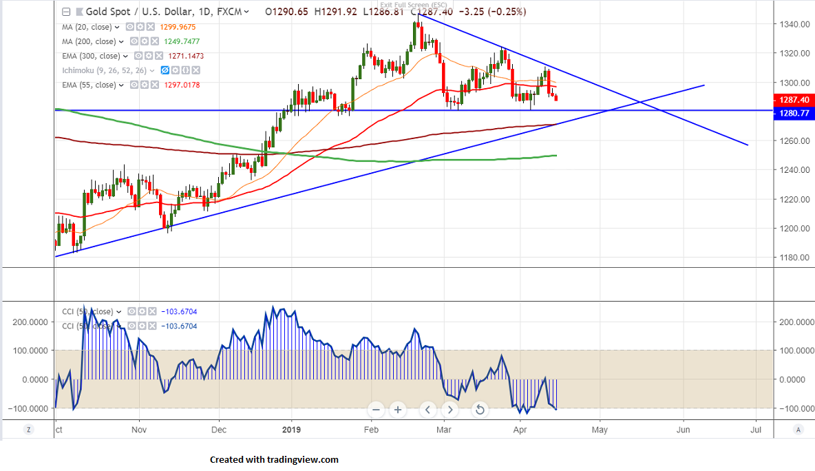 The near term support is around $1280 and any convincing below will drag the commodity down till $1269/$1260.