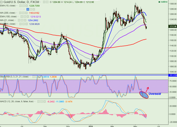 - Any indicative break above $1218 will take the commodity till $1225/$1235 level. Short term bullishness only above $1243 (55 day EMA).