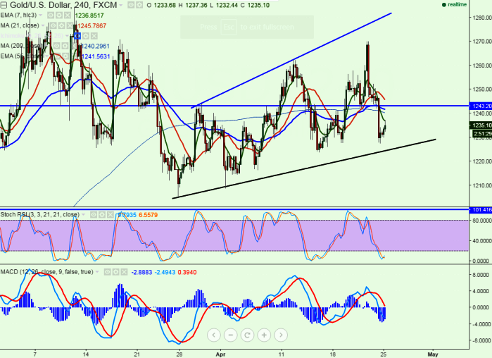 - Major support - $1225 (trend line joining $1205 and $1208)