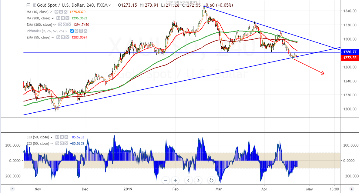 The yellow metal hits low of $1271.04 on Apr 18th 2019 and jumped till $1279.68 yesterday. The near term resistance is around $1281 (support turned into resistance) and any break above will take the yellow metal to next level till $1285/$1292.