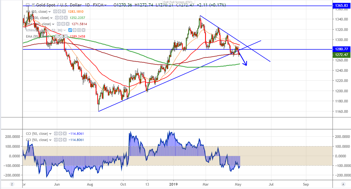 The near term resistance is around $1278 and any break above confirms slight bullishness and a jump till $1282. Any break above $1282 confirms major intraday bullishness.