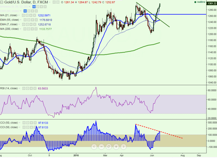 - The yellow metal has broken major resistance $1300 and jumped till $1301.22 at the time of writing. It is currently trading around $1299.68.