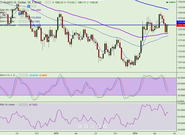 - Technically gold is bullish as long as support $1205 (90 week EMA) holds. Any weekly close below $1205 will drag the pair down till $1175/$1160/$1100.