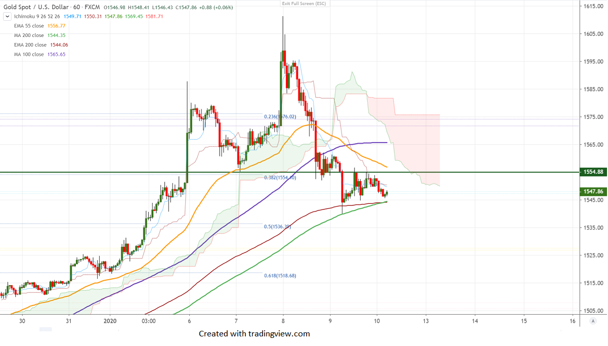 Gold continues to trade weak after hitting a 7-year high at $1611 on easing US-Iran geopolitical tension. Chinese chief trade negotiator is set to visit Washington by Jan 15th and phase one deal to be signed. The easing trade tension will put pressure on Safe-haven assets like yen and gold. The yellow metal hits low of $1540 and is currently trading around $1548.