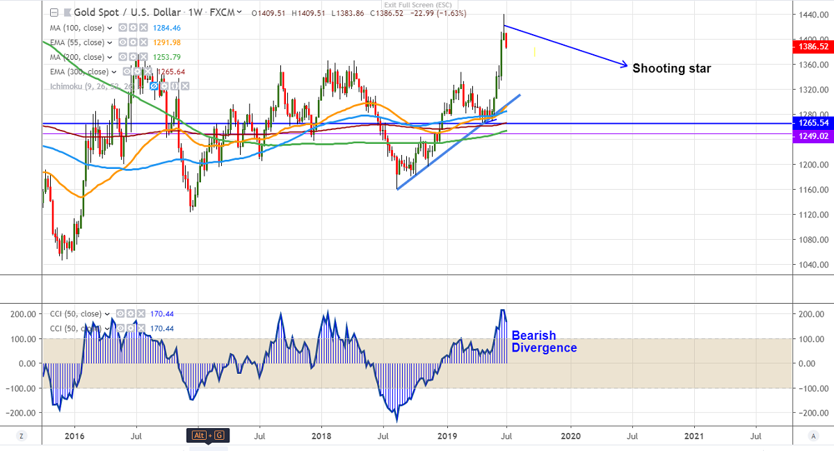 Gold has lost nearly $50 from high of $1440 in the previous week. The decline in yellow metal price is due to the easing of the Safe-haven demand after Trump and Xi Jinping agreed to restart trade talks in the G20 meeting. It hits low of $1387.32 and is currently trading around $1386.50.