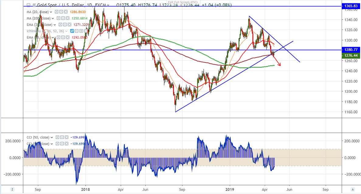 Gold has recovered slightly more than $10 amid strong US dollar index. The yellow metal has lost more than $80 from high of $1341 made on Feb 20th 2019 on account of strong global markets and easing US-Sino trade tensions.
