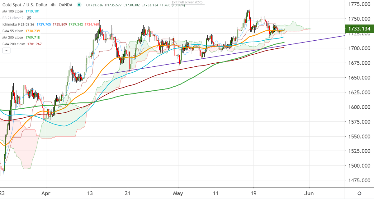 The immediate resistance is around $1740, any indicative break beyond targets $17. Significant trend continuation can be seen only if it surges past $1765, a jump till $1800 likely.