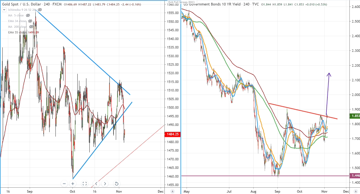 US 10-year yield is showing a good recovery of more than 12%, after forming a minor bottom around 1.67%. Any further jump can be seen only above 1.907% and is currently trading at 1.85%.