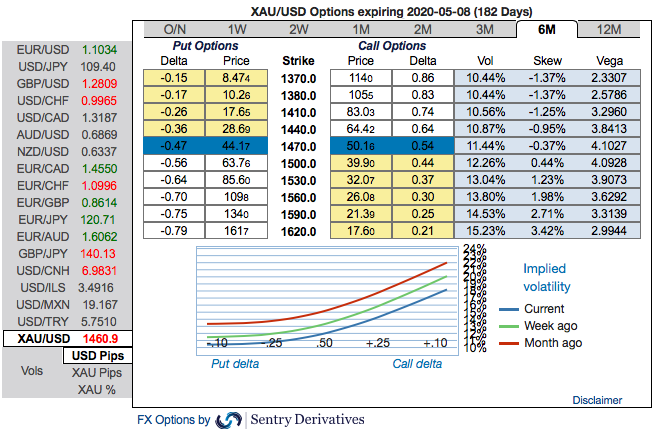 Thus, we still advocate buying 3m XAUUSD (1%) ITM -0.69 delta calls on hedging grounds. If expiry is not near, delta movement wouldn’t be 1-point increase with 1 pip in the underlying movement, which means if the spot moves 1 pip, depending on the strike price of the option, the option would also move less than 1. Thereby, in the money call option with a very strong delta will move in tandem with the underlying. Courtesy: Sentrix and Saxobank