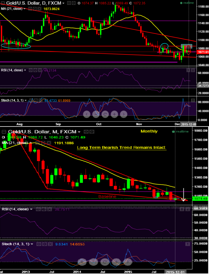 As stated earlier nothing much is happening with this yellow metal and we've been firm carrying our bearish stance.