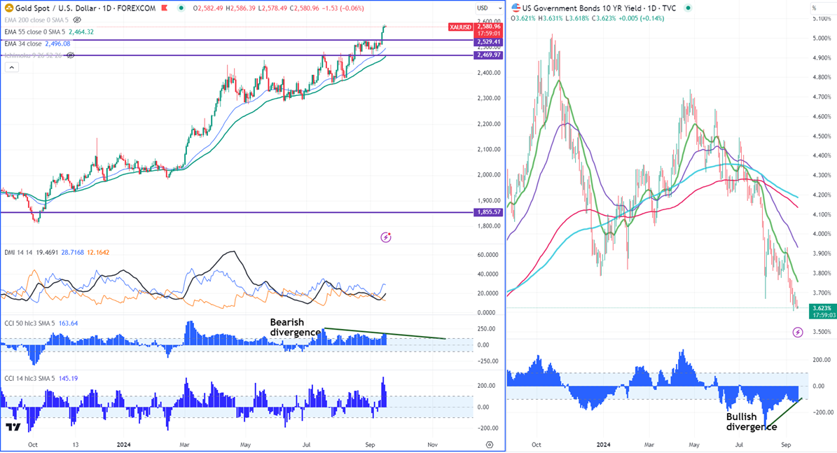 Gold hits fresh all-time high ahead of US fed monetary policy. It hit a high of $2589.71 and is currently trading around $2584.30.