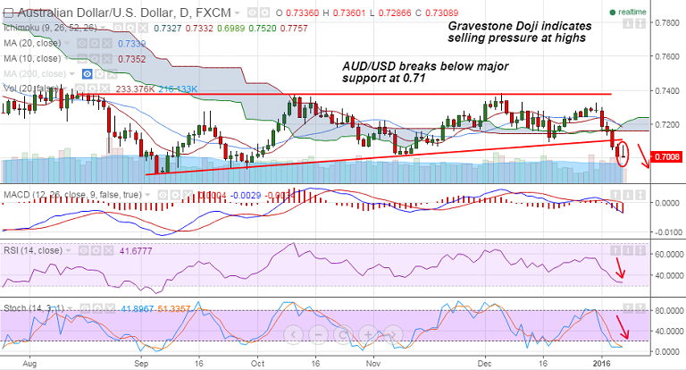 FxWirePro: Gravestone Doji on AUD/USD charts shows selling pressure at highs