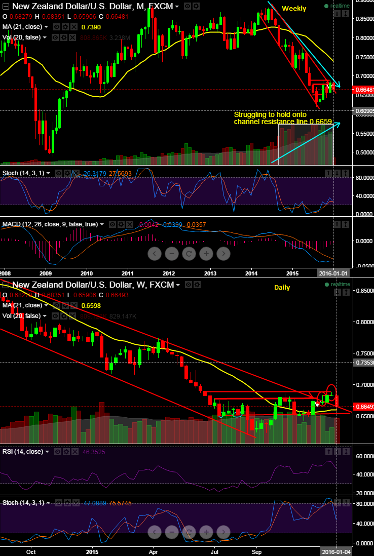Weekly analysis: Despite the breach of channel line resistance at 0.6723, pair still shows further weakness as it doesn't seem to sustain.