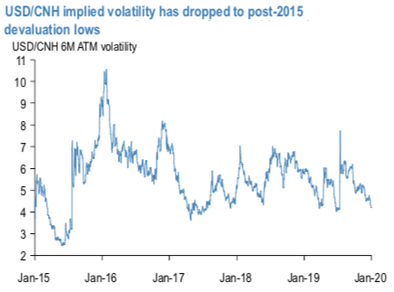 Hedging coronavirus outbreak with FX options is not difficult given low vol. The rapid spread of the 2019 novel coronavirus (n-Cov) outbreak, with Wuhan (China) as Ground Zero, has raised fears of another SARS-like global epidemic. With the fatality rate running around 3% (vs. 10% in SARS) over 900 infected patients (vs. 8000 in SARS), the current market stance of heightened vigilance that demands some prudent risk trimming, but stops short of panic seems to be the appropriate one. The eventual seriousness / contagion potential of this new strain of virus will only be known in time, but one silver lining in the cloud (for FX option market participants) that has been the multi-year death- march lower in FX vol is that hedging adverse risk-market outcomes has rarely been easier. We highlight a few defensive option ideas that can slot into cyclically bullish macro portfolios: