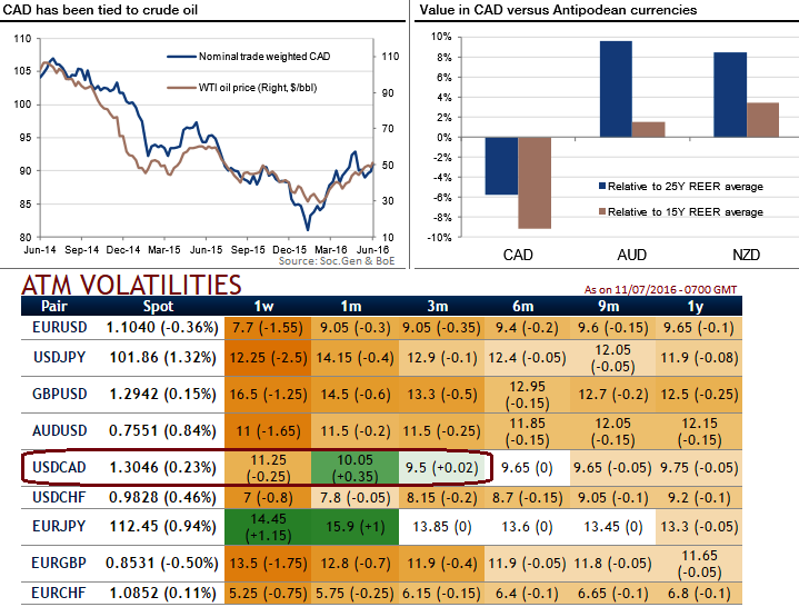 The Canadian dollar’s direction has been heavily influenced by crude oil prices in recent quarters (see above graph). So long as the recent lows in oil prices hold, there is room for CAD to outperform other commodity currencies in H2 16.