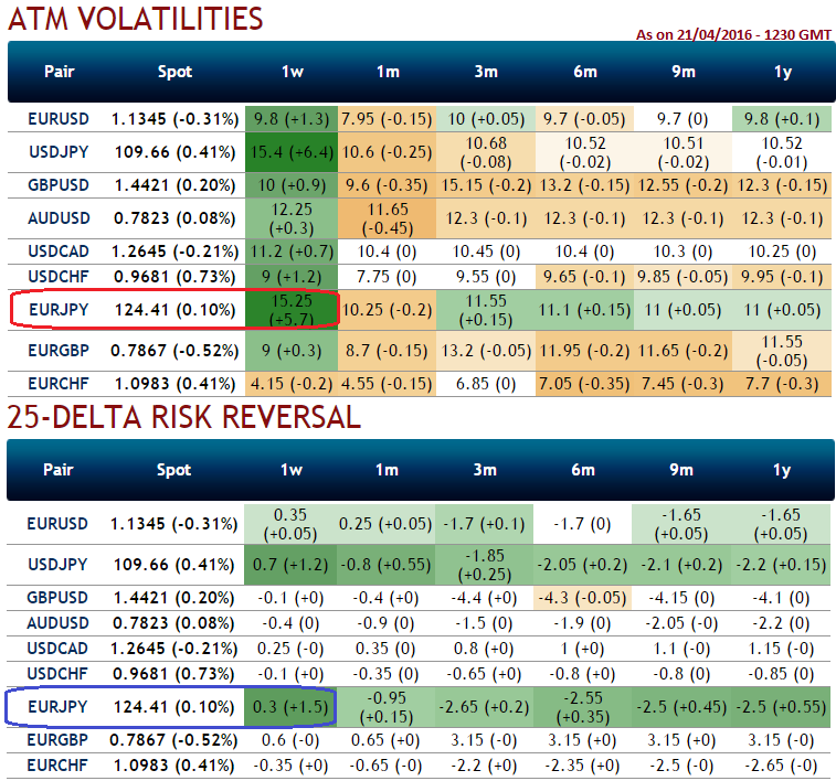 At spot FX flashes of EURUSD at 1.1257 we see delta risk reversal for contracts of 1W and 1M expiries have shown bullish recovery signals, but in long term (3M-1Y, i.e. H2’ 2016) put contracts are on higher demand.