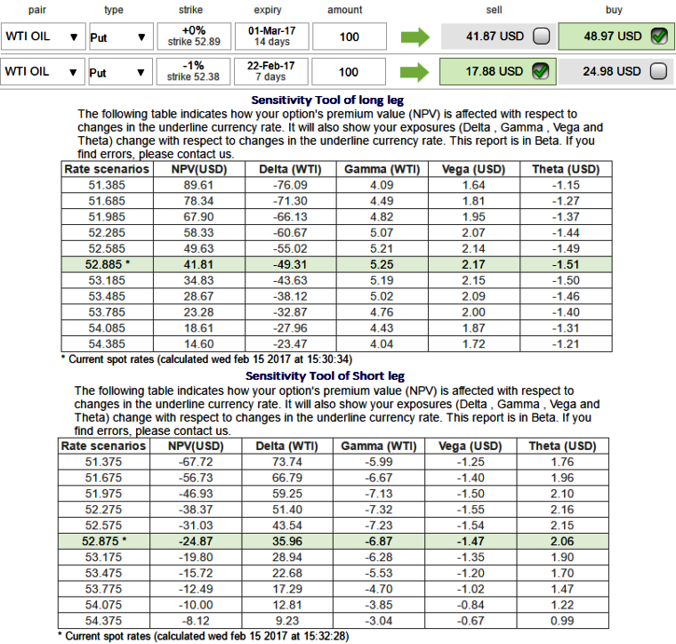 So, here goes the strategy, debit put spread = Go long 2w ATM -0.49 delta Put + Short 1W (1%) OTM Put with lower Strike Price with net delta should be at around -0.15.
