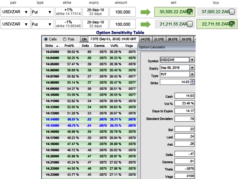 Stay Short in USDZAR: Current spot ref. at 14.0710, contemplating above political turbulence we recommend USDZAR shorts but with positional trades using diagonal credit put spreads (DCPS), targeting 8.5% move lower to 12.8749 in medium terms. We place a stop-loss 1% higher than current levels at 14.1741 9 (as shown in the diagram, one can also keep the tolerance levels of 1-2% extra).