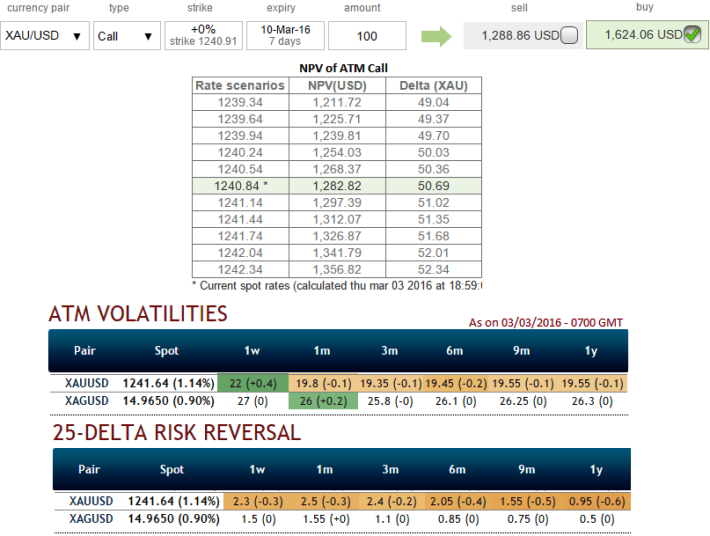 The implied volatility of 1W XAU/USD ATM contracts 22%.