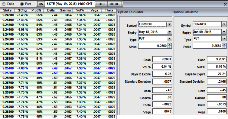 You can observe ATM puts of EURNOK is shrinking below 8%, the tepid IV implies that the market thinks the price will not move much.